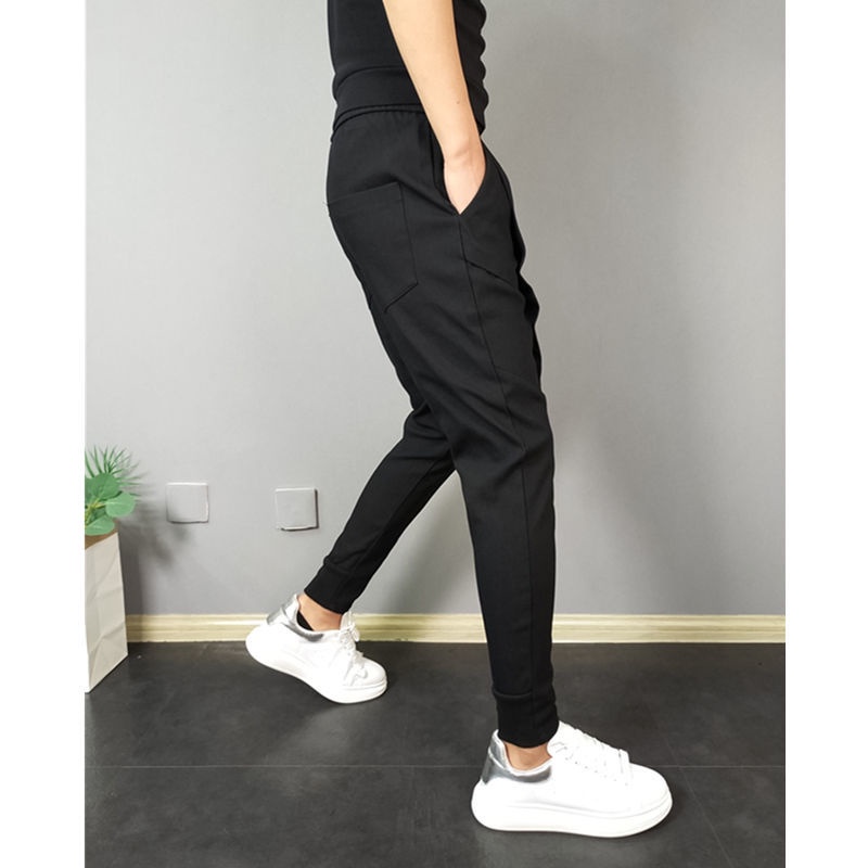 Men’s Korean Style Solid Color Jogging Pant Man Slim Fit Drawstring Casual Ankle Pants